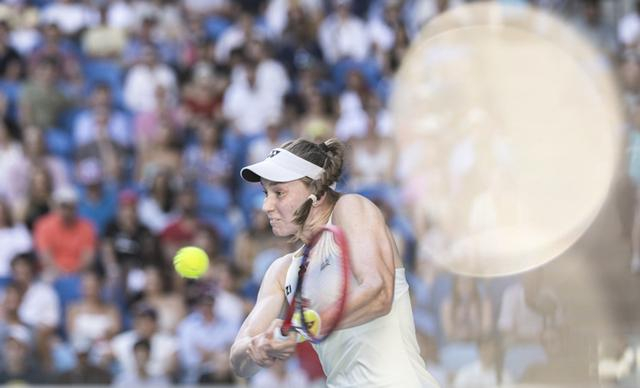 新华社照片,墨尔本(澳大利亚),2026年1月26日 1月26日,莱巴金娜在比赛中回球。 当日,在墨尔本进行的2026年澳大利亚网球公开赛女单第四轮比赛中,哈萨克斯坦选手莱巴金娜2比0战胜比利时选手梅尔滕斯,晋级八强。 新华社发(胡泾辰摄)